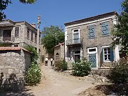 The buildings in the village have Greek and Turkish architecture.[6] The original houses in the village are made of stone, and have two stories in general. All houses have a courtyard and a garden. The village is surrounded by olive groves. In the 1980s, a group of people, who escaped the big city life, came to Adatepe, which was about to turn into a ghost town towards the end of the 1980s.[6] People from Ankara, İzmir and mostly from Istanbul purchased buildings, which could be regarded as ruined, and converted them into living spaces by keeping their traditional Greek and Turkish architecture.[6] Today, the newcomers and the locals live in harmony.[4][6] The total houses in the village number 380,[7] and Adatepe was declared in 1989 an urban protected area of first grade, being the only one with this status in the region.[3][4]