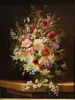 Dietrich was born in Wittenberg, Germany, and painted flowers in fine detail in a manner resembling that of seventeenth-century Dutch still-life painters. [1]