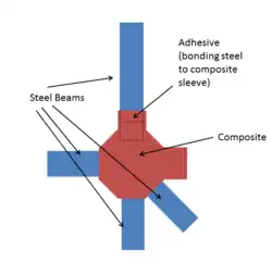 Other than reducing the weight of a vehicle and maintaining or increasing the strength of the joint, the use of CFRP joined to metals with adhesives can help improve the fatigue life of the joint. A study of the behavior of adhesive joints of steel with CFRP proposed a new joint that connects five steel members with the use of a CFRP node.[6]