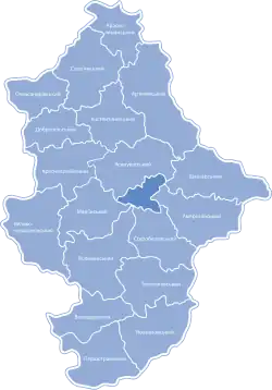 - Kalmiuske (Кальміуський район), the center is in the city of Kalmiuske;