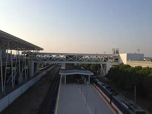 Adnan Menderes Airport railway station also referred to as just Airport (Turkish: Adnan Menderes Havalimanı, Havalimanı) is a railway station in southern Gaziemir. The station is served by regional trains heading to southwestern Turkey, operated by the Turkish State Railways. The station allows a connection for people between planes at Adnan Menderes Airport to direct train service into İzmir. All regional trains stops at the station. The station was built in 1987 along with the completion of the airport. The İZBAN commuter rail service began serving the station on August 30, 2010. İZBAN operates between Aliağa and Tepeköy.