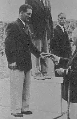 ![]() Müller (2nd right) at the 1948 Olympics | |||||||||||||||