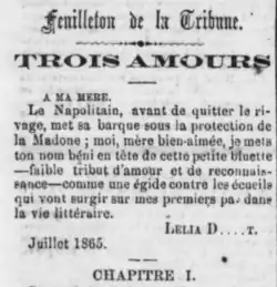 Original publication of the Trois Amours short story by Adolphe Duhart, published on August 15, 1865