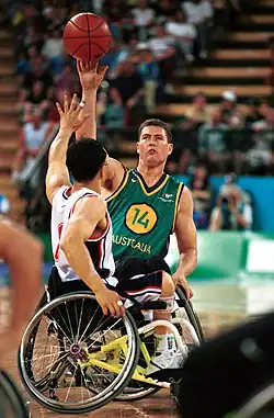 ![]() King shoots the ball during competition at the 2000 Sydney Paralympics | |||||||||||||||||||||
