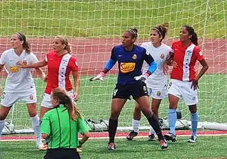 On December 10, 2015, Franch signed with the National Women's Soccer League club, Portland Thorns FC, after rights to her were traded from the expansion Orlando Pride.[17] As a back-up keeper to Michelle Betos she helped the Thorns win the NWSL Shield in the 2016 season, recording three shutouts in six appearances. As starting keeper in 2017, she set a league record with 11 shutouts in the regular season,[18] helped the Thorns win the NWSL Championship in a 1–0 shutout over the North Carolina Courage, and was named NWSL Goalkeeper of the Year.[19]