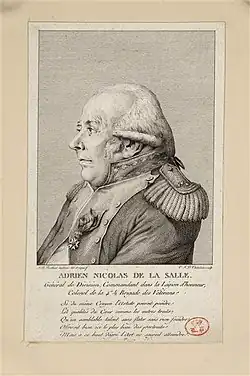 - ^ Tableau de la vie militaire d'Adrien-Nicolas La Salle, maréchal de camp le 1er avril 1791, depuis commandant de la province de l'ouest de S. -Domingue, et deux fois gouverneur général, par intérim des isles sous le vent. [Paris?], 1794. (John Carter Brown Library, Providence, Rhode Island).