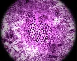 Parasites of this species include Amblyospora polykarya, a species of Microspora that lasts for a single generation on Ae. taeniorhynchus,[58] and Goelomomyces psorophorae, a fungus impacting mosquito ovaries that stops egg maturity and kills all larvae.[59]