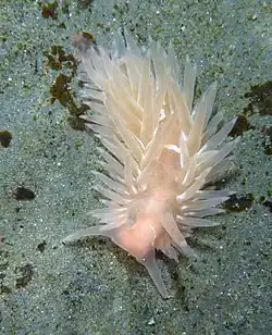 - ^ a b c d Kienberger, K., Carmona, L., Pola, M., Padula, V., Gosliner, T. M. and Cervera, J. L. (2016). Aeolidia papillosa (Linnaeus, 1761) (Mollusca: Heterobranchia: Nudibranchia), single species or a cryptic species complex? A morphological and molecular study. Zoological Journal of the Linnean Society, 177: 481–506. doi: 10.1111/zoj.12379