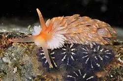 Aeolidiella alderi is a species of sea slug, an aeolid nudibranch in the family Aeolidiidae.[2] It is native to northwestern Europe where it occurs in the intertidal zone. It is a predator and feeds on sea anemones.