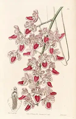 Aerides maculosa is a species of orchid endemic to India.[3] The epithet "maculosa" means "spotted", in reference to the colored spots on the tepals.[4]