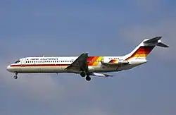 The airline was founded in La Paz, Mexico in 1960 as an air taxi operator using a fleet of Cessna and Beechcraft airplanes, initially known as Servicios Aéreos. By the early 1980s the demand for domestic charter flights had grown enough that the larger Douglas DC-3 was added to the fleet. Scheduled services were launched in June 1982, initially interlinking La Paz, Tijuana and Hermosillo using one Convair 340. In 1989, international scheduled jet flights commenced, with Los Angeles being the first destination. By late 1989, the airline was also serving Phoenix and Tucson besides Los Angeles in the U.S.[4][5] In 1992, San Diego had been added to the list of cities served by Aero California in the U.S.[6] By 1995, the fleet had been upgraded to only include jet aircraft of various McDonnell Douglas DC-9 subtypes.