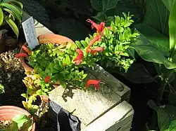 Aeschynanthus buxifolius, the box-leaf lipstick plant, is a species of flowering plant in the family Gesneriaceae, native to southern China and northern Vietnam.[1][2] An epiphyte and lithophyte, it is found growing in forests at elevations from 1,300 to 2,200 m (4,300 to 7,200 ft).[3] It has gained the Royal Horticultural Society's Award of Garden Merit as a tropical hothouse ornamental.[4]