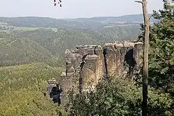 The Carola Rocks (Carolafelsen) are also popular with walkers, being one of the best-known viewing points in the Affensteine massif.