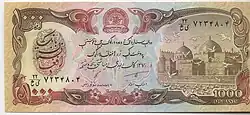 | [14] | [15] | Afs. 1,000 | 156 × 66 mm | Orange | Shrine of Ali, Mazar-i-Sharif | Tomb of Ahmad Shah Durrani | |