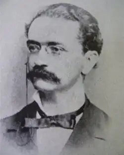 Born on 30 November 1847 in Santa Bárbara do Mato Dentro—currently the municipality of Santa Bárbara, Minas Gerais—Afonso Pena was the seventh of twelve children of Domingos José Teixeira Penna and Anna Moreira Teixeira Penna; being his mother's firstborn, as she was his father's second wife.[1][2] Domingos was a Portuguese immigrant from São Salvador da Ribeira de Pena (also spelled "da Penha") and in the new country he owned land, a gold mine, and a large number of slaves.[1][2][3] Domingos' father, Manuel José de Carvalho Penha (b. 1769), was supposedly the first to adopt the name "Pena".[3]