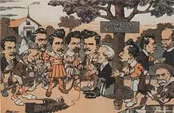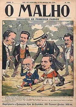 Afonso Celso implemented a network of issuing banks, with the aim of stimulating the economy, which led to unbridled speculation, known as the "Encilhamento".[56] A large number of new companies was founded, whose capital almost reached that of all companies founded since the birth of the Brazilian Empire. In the words of Américo Lacombe, "there was a terrible contrast between the government's euphoria, celebrating the electoral victory and the liveliness of the business world. While the military class, especially the young ones, indoctrinated by the positivist agenda, were dissatisfied".[54]