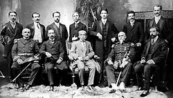 The work on the civil code was interrupted.[20] That same day, Pena sent a telegram to Afonso Celso, who had been arrested, expressing his solidarity.[58] Pena was pessimistic about the provisional government, later declaring "what we have [now] is not a republic—it is pure militarism".[59] After the republic was proclaimed, he returned to Barbacena and withdrew from public life, saddened by the banishment of emperor Pedro II.[25][60] He thought about abandoning politics to resume his law career.[53] Like many other monarchist politicians of his time, he ended up adopting a "resigned acceptance" to the new regime, as he feared any reaction could lead to a civil war.[48] Pena remained a convinced monarchist and continued to defend the emperor, whom he considered to be a man of "great knowledge and deeds".[53] He had become one of the most prestigious politicians of the Empire.[61]