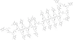 InChI=1S/C192H250N57O107P19S19/c1-79-46-238(184(271)221-163(79)252)144-27-89(108(55-250)318-144)338-358(281,377)300-64-117-98(36-146(327-117)240-48-81(3)165(254)223-186(240)273)353-372(295,391)317-74-127-106(44-154(337-127)248-77-207-157-161(248)217-174(202)219-172(157)261)355-373(296,392)307-63-116-94(32-141(326-116)235-23-15-133(198)214-181(235)268)343-363(286,382)310-68-121-104(42-152(331-121)246-54-87(9)171(260)229-192(246)279)352-371(294,390)312-70-123-101(39-149(333-123)243-51-84(6)168(257)226-189(243)276)349-368(291,387)304-60-113-91(29-138(323-113)232-20-12-130(195)211-178(232)265)340-360(283,379)302-58-111-95(33-142(321-111)236-24-16-134(199)215-182(236)269)344-364(287,383)315-72-125-105(43-153(335-125)247-76-206-156-159(201)204-75-205-160(156)247)354-374(297,393)313-71-124-102(40-150(334-124)244-52-85(7)169(258)227-190(244)277)350-369(292,388)305-61-114-93(31-140(324-114)234-22-14-132(197)213-180(234)267)342-362(285,381)309-67-120-103(41-151(330-120)245-53-86(8)170(259)228-191(245)278)351-370(293,389)311-69-122-100(38-148(332-122)242-50-83(5)167(256)225-188(242)275)348-367(290,386)303-59-112-90(28-137(322-112)231-19-11-129(194)210-177(231)264)339-359(282,378)301-57-110-92(30-139(320-110)233-21-13-131(196)212-179(233)266)341-361(284,380)308-66-119-99(37-147(329-119)241-49-82(4)166(255)224-187(241)274)347-366(289,385)306-62-115-96(34-143(325-115)237-25-17-135(200)216-183(237)270)345-365(288,384)316-73-126-107(45-155(336-126)249-78-208-158-162(249)218-175(203)220-173(158)262)356-375(298,394)314-65-118-97(35-145(328-118)239-47-80(2)164(253)222-185(239)272)346-357(280,376)299-56-109-88(251)26-136(319-109)230-18-10-128(193)209-176(230)263/h10-25,46-54,75-78,88-127,136-155,250-251H,26-45,55-74H2,1-9H3,(H,280,376)(H,281,377)(H,282,378)(H,283,379)(H,284,380)(H,285,381)(H,286,382)(H,287,383)(H,288,384)(H,289,385)(H,290,386)(H,291,387)(H,292,388)(H,293,389)(H,294,390)(H,295,391)(H,296,392)(H,297,393)(H,298,394)(H2,193,209,263)(H2,194,210,264)(H2,195,211,265)(H2,196,212,266)(H2,197,213,267)(H2,198,214,268)(H2,199,215,269)(H2,200,216,270)(H2,201,204,205)(H,221,252,271)(H,222,253,272)(H,223,254,273)(H,224,255,274)(H,225,256,275)(H,226,257,276)(H,227,258,277)(H,228,259,278)(H,229,260,279)(H3,202,217,219,261)(H3,203,218,220,262)/t88-,89-,90-,91-,92-,93-,94-,95-,96-,97-,98-,99-,100-,101-,102-,103-,104-,105-,106-,107-,108+,109+,110+,111+,112+,113+,114+,115+,116+,117+,118+,119+,120+,121+,122+,123+,124+,125+,126+,127+,136+,137+,138+,139+,140+,141+,142+,143+,144+,145+,146+,147+,148+,149+,150+,151+,152+,153+,154+,155+,357?,358?,359?,360?,361?,362?,363?,364?,365?,366?,367?,368?,369?,370?,371?,372?,373?,374?,375?/m0/s1 Key: XOHQPRNFRWNWQW-NYUPDZBESA-N InChI=1/C192H250N57O107P19S19/c1-79-46-238(184(271)221-163(79)252)144-27-89(108(55-250)318-144)338-358(281,377)300-64-117-98(36-146(327-117)240-48-81(3)165(254)223-186(240)273)353-372(295,391)317-74-127-106(44-154(337-127)248-77-207-157-161(248)217-174(202)219-172(157)261)355-373(296,392)307-63-116-94(32-141(326-116)235-23-15-133(198)214-181(235)268)343-363(286,382)310-68-121-104(42-152(331-121)246-54-87(9)171(260)229-192(246)279)352-371(294,390)312-70-123-101(39-149(333-123)243-51-84(6)168(257)226-189(243)276)349-368(291,387)304-60-113-91(29-138(323-113)232-20-12-130(195)211-178(232)265)340-360(283,379)302-58-111-95(33-142(321-111)236-24-16-134(199)215-182(236)269)344-364(287,383)315-72-125-105(43-153(335-125)247-76-206-156-159(201)204-75-205-160(156)247)354-374(297,393)313-71-124-102(40-150(334-124)244-52-85(7)169(258)227-190(244)277)350-369(292,388)305-61-114-93(31-140(324-114)234-22-14-132(197)213-180(234)267)342-362(285,381)309-67-120-103(41-151(330-120)245-53-86(8)170(259)228-191(245)278)351-370(293,389)311-69-122-100(38-148(332-122)242-50-83(5)167(256)225-188(242)275)348-367(290,386)303-59-112-90(28-137(322-112)231-19-11-129(194)210-177(231)264)339-359(282,378)301-57-110-92(30-139(320-110)233-21-13-131(196)212-179(233)266)341-361(284,380)308-66-119-99(37-147(329-119)241-49-82(4)166(255)224-187(241)274)347-366(289,385)306-62-115-96(34-143(325-115)237-25-17-135(200)216-183(237)270)345-365(288,384)316-73-126-107(45-155(336-126)249-78-208-158-162(249)218-175(203)220-173(158)262)356-375(298,394)314-65-118-97(35-145(328-118)239-47-80(2)164(253)222-185(239)272)346-357(280,376)299-56-109-88(251)26-136(319-109)230-18-10-128(193)209-176(230)263/h10-25,46-54,75-78,88-127,136-155,250-251H,26-45,55-74H2,1-9H3,(H,280,376)(H,281,377)(H,282,378)(H,283,379)(H,284,380)(H,285,381)(H,286,382)(H,287,383)(H,288,384)(H,289,385)(H,290,386)(H,291,387)(H,292,388)(H,293,389)(H,294,390)(H,295,391)(H,296,392)(H,297,393)(H,298,394)(H2,193,209,263)(H2,194,210,264)(H2,195,211,265)(H2,196,212,266)(H2,197,213,267)(H2,198,214,268)(H2,199,215,269)(H2,200,216,270)(H2,201,204,205)(H,221,252,271)(H,222,253,272)(H,223,254,273)(H,224,255,274)(H,225,256,275)(H,226,257,276)(H,227,258,277)(H,228,259,278)(H,229,260,279)(H3,202,217,219,261)(H3,203,218,220,262)/t88-,89-,90-,91-,92-,93-,94-,95-,96-,97-,98-,99-,100-,101-,102-,103-,104-,105-,106-,107-,108+,109+,110+,111+,112+,113+,114+,115+,116+,117+,118+,119+,120+,121+,122+,123+,124+,125+,126+,127+,136+,137+,138+,139+,140+,141+,142+,143+,144+,145+,146+,147+,148+,149+,150+,151+,152+,153+,154+,155+,357?,358?,359?,360?,361?,362?,363?,364?,365?,366?,367?,368?,369?,370?,371?,372?,373?,374?,375?/m0/s1 Key: XOHQPRNFRWNWQW-NYUPDZBEBZ