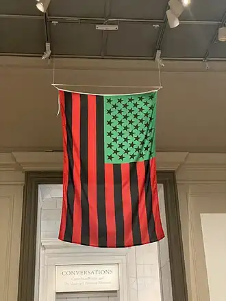 ![]() African American Flag (1990) in 2022 at the National Gallery of Art's showing of Afro-Atlantic Histories | |