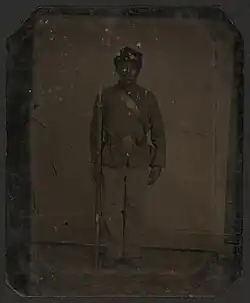 African Americans were initially not allowed to join the Union Army but were finally allowed in 1862 after smaller forms of protests. Many of the protests were by African American men who wanted to not only express their patriotism but also establish and fight for their identities by fighting for the Union, and would do so in forms of petitions, grouping up with each other to enlist to volunteer in mass, and forms of community resolutions. After being allowed to join, black soldiers would have their names documented and have their pictures taken before being sent off to their duties. (planning to add a couple of portraits to this section)