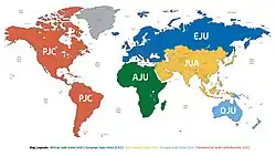 The African Judo Union (AJU) is the governing body of judo in Africa. It is one of the five continental confederations making up the International Judo Federation (IJF).[1] AJU was formed on 28 November 1961 in Dakar (Senegal).[2][3] AJU has headquarters in Madagascar and consists of 54 member federations.