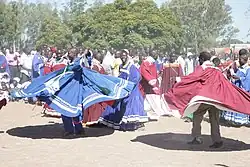 Zionism blends traditional Southern African beliefs with faith healing and water baptism. Some members wear white robes and carry staffs.[3]
