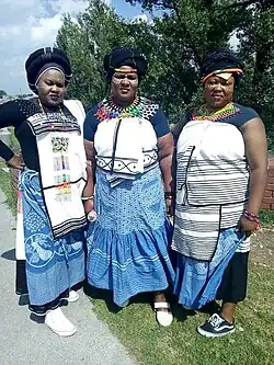 The Republic of South Africa, with an estimate of more than 57 million people from countless backgrounds, ethnicities and religions, holds in it an immense cultural diversity that is expressed through the vast array of topics ranging from cuisine, music, languages to celebrations.[2] Fashion, connecting closely with one's daily life, also plays a crucial role in the identification of South Africa's culture and people, merely as it does every elsewhere in the world. Clothing can be chosen for convenience, or be used to express style, political beliefs, religious beliefs and perspective in life. No matter how it was chosen, every single piece of clothing contains a long history in it.
