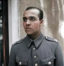 Between the 1900s and the 1970s, the few Africans in Finland were mostly students (e.g., from Nigeria and Ethiopia), political exiles from South Africa or people married to Finns.[5] In World War II (1939–1945), there were some Afro-Finnish soldiers, including Private 1st Class Rudolf Prüss, who served as a ski patrol leader on the Karelian Isthmus and was killed in the Winter War, and Corporal Holger Sonntag, who was of African-American and German descent and served as a driver in both the Winter War and the Continuation War.[15]