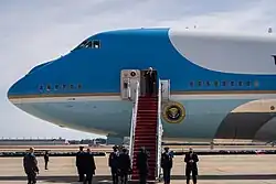 On March 19, 2021, Biden stumbled three times as he walked up the stairs to enter Air Force One, the U.S. president's official plane, at Joint Base Andrews before a visit to Atlanta, Georgia.[35][36] A spokesperson for the White House attributed his stumbles to windy weather.[35]