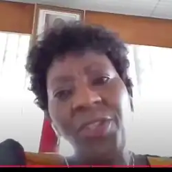 Nyalonje oversaw the reopening of schools on 7 September 2020 after their closure in March that year due to the COVID-19 pandemic.[10] In February 2022, she launched a Code of Conduct for teachers that seeks to regulate professional conduct across the education sector.[11] In June 2021, Nyalonje was sent out of Parliament for not wearing a school uniform as all other female members had done to mark the Day of the African Child and advocate for female education.[12]