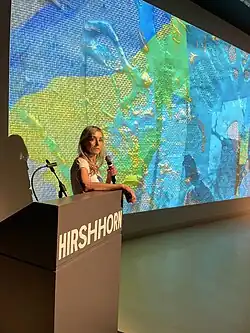 Pilat has put on numerous shows and exhibitions of her own work. In 2021, she debuted the Renaissance 2.0 solo exhibition at Modernism West in San Francisco, which depicted classic art in modern ways with augmented reality. Following Russia's invasion of Ukraine in February 2022, Pilat completed a painting with the assistance of the Boston Dynamics Spot robot, titled "Sunrise March," which sold for $40,000 at a private charity auction[13] and was subsequently exhibited alongside Poland's Embassy in Washington D.C. at the Hirshhorn Museum, the Smithsonian National Air and Space Museum,[14] and the Strathmore center.[15]