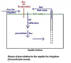An example is given of the reuse of groundwater for irrigation by pumped wells.
