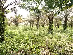 Oil palm has been an important crop in Benin since the 19th century, when palm groves were established to meet the oil demand for soaps in the Western world. Oil palms are indigenous to West Africa, naturally occurring in swampy areas. The many products from the plants (fibers, oils, sap) have been used for centuries by local populations. Commercial usage focuses upon the oil from the meat surrounding the kernels (palm oil), and the oil within the kernel (palm kernel oil). Estimates on the size of the palm plantations at the historical peak in the 1930s put them covering 500,000 hectares (1,200,000 acres). Processing in those days was by hand, with women primarily serving as small-scale producers and processors. Benin undertook an oil palm industrialization program in the 1950s and began to invest in large-scale, public, industrial processing facilities. With independence in 1960, the national government increased the effort and focused on improving productivity by planting around 30,000 hectares (74,000 acres) of selected oil palm seedlings between 1960 and 1974. Challenges came: rainfall decreased and management problems rose, while external competition from Asian countries pressured profitability, leading the government to back away from the industrialized palm oil sector. The problems hit the small-holder producers as well and the peak number of palm groves dropped from 500,000 hectares (1,200,000 acres) to an estimated 300,000 hectares (740,000 acres) by 2000. Current estimates put the land under cultivation at between 300,000 and 400,000 hectares (740,000 and 990,000 acres), mostly in Ouémé, Plateau, Atlantic, Mono, Couffo, and Zou Districts.[1]