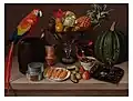 It is fascinating how Arrieta sought to recover the pictorial genre of the still life charged with symbolism, which had been very common in the 16th century before developing in the 17th century into a simple representation of nature. The Academy of San Carlos did not even include still-life painting on its curriculum, but Arrieta undertook to salvage the genre, portraying exotic Mexican foods and utensils used specifically in the cuisine of Puebla. The most attractive features of his still lifes are the realism of the textures, the brilliant colors of the fruit, and the realistic rendering of glass, although his critics have objected to the lack of any logic between certain opposing elements, such as his representation of a hieratic cat next to a chicken.