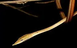 Ahaetulla laudankia, known as the Laudankia vine snake, is a species of snake in the family Colubridae. It is endemic to India and while being a rare species, it has a relatively large range, extending from the Eastern Ghats through Central India west to eastern Rajasthan. Its name derives from the Odia term laudanka, which translates to "dried stems of bottle gourd, as the snake closely resembles them with its thin body and brownish color.[2]