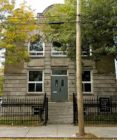 ![]() Ahavas Sholem Synagogue, detail of façade. Inscription reads: "Congregation Ahavas Sholem Ashkenazi tradition Founded in 5672 (1911–12). One of the founders and treasurer was Joseph Lurie" | |