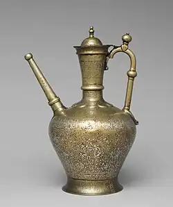 - ^ a b c d e f g h i j k l m n o p q r s t u v w x y z aa ab ac ad ae af ag ah ai aj ak al am Rice, D.S. (1957). "Inlaid Brasses from the Workshop of Aḥmad al-Dhakī al-Mawṣilī". Ars Orientalis. 2: 283–326. JSTOR 4629040. Retrieved 17 November 2022.