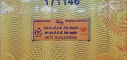![]() Ahmedabad - Mumbai Central Tejas Express train board. | |||||||||||||||||||||||||||||||||||||||||||||||||||||||||||||||||||||||||||||||||||||||||||||||||||||