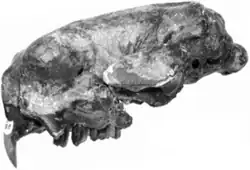 Ahytherium is a genus of the extinct family Megalonychidae within the suborder Folivora and the superorder Xenarthra. The Megalonychidae represent a very diverse group. The closest relatives of the Megalonychidae are the Megatheriidae and the Nothrotheriidae. The former include the largest known representatives of the sloths, the latter consist of rather smaller members of the sloths. All three families together are relegated to the superfamily of Megatherioidea. Within the sloths, the Megalonychidae form a very old lineage, with the oldest known fossils dating to the Oligocene of Patagonia.[3] Characteristic features are found in the caniniform and incisiform design of the anterior tooth in each case, as well as in the molar-like (molariform) designed posterior teeth. The latter are characterized by two transverse ridges (bilophodont) on the occlusal surface, which points to a rather leaf-eating diet in the Megalonychidae. Unlike the Megatheriidae and the Nothrotheriidae, the hind foot is plantigrade in shape and not twisted, thus retaining its original shape.[4] The Megalonychidae were once widespread, with fossil remains found in both South America and Central America, as well as in North America as far north as the Arctic.[4] In a classic view based on skeletal anatomy comparisons-based view, the Megalonychidae originally included the sloths of the West Indies as well as the extant two-toed sloths of the genus Choloepus,[5] which are now considered to belong to the superfamily Mylodontoidea.[6][7] Molecular genetic However, studies together with protein analyses failed to establish closer relationships between these individual groups.[6][7]