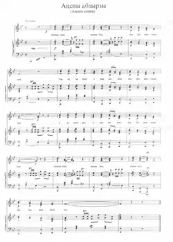 "Aiaaira" (Abkhaz: Аиааира; "Victory") is the national anthem of the partially recognized state of Abkhazia.[note 1] It was adopted in 1992. The lyrics were written by poet Gennady Alamia, and the music was composed by Valery Chkadua.[1]