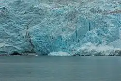 The Aialik Glacier is a glacier in the Kenai Peninsula Borough of Alaska. It drains into Aialik Bay. Part of Kenai Fjords National Park, it (along with many other glaciers) drains the Harding Icefield. Aialik Glacier, a little over 15 miles from Seward, is the largest glacier in Aialik Bay, located in Kenai Fjords National Park. While fairly stable, the glacier calves most actively in May and June.