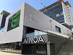 The first stage of Ainoa was opened on 24 October 2013. Part of the shopping centre was built into a building built in 1979 which hosted the Sokos department store in Tapiola until 2011.[3] The building was completely renovated and space for a K-Supermarket grocery store was cleared underneath it. The total surface area of the first stage is about 10 thousand square metres, and it hosted about 30 stores at the start.[4]