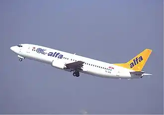 AirAlfa was a charter airline based in Atatürk International Airport, Istanbul, Turkey. It also had an additional base at Antalya Airport. It also operated charter services to tour operators.[1] Air Alfa ceased operations in December 2001 and had its licence revoked on 17 November 2002.