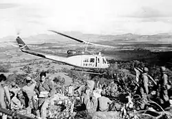 When the North Vietnamese Army overran South Vietnam in 1975, Air America helicopters participated in Operation Frequent Wind evacuating both U.S. civilians and South Vietnamese people associated with the South Vietnamese regime.[10][11] The infamous photograph depicting the final evacuation, by Dutch photographer Hubert van Es, was an Air America helicopter taking people from an apartment building at 22 Gia Long Street used by USAID and CIA employees.[12][13]