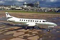 Scheduled passenger services between Southampton and the Channel Islands began in 1988 using a leased Hawker Siddeley HS 748 aircraft. Flights operated five times a day with fares of £29 each way; although initially the service was not a success, incurring losses of £750,000 in the first year of operation in the face of stiff competition. The HS 748 was returned to the lessor in March 1989 and the Southampton route dropped. From 1990, scheduled services were operated under the brand Air Corbiere. A Fairchild Metro III was purchased in 1992 to operate alongside the Cessna 406s.[13][14] The Metro was the only example of the type on the UK aircraft register.[15] Scheduled services, which ended in 1994, included daily flights linking Coventry-Gloucester, Jersey/Guernsey to Rennes, and Liverpool to the Channel Islands.[16]