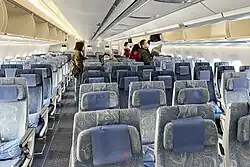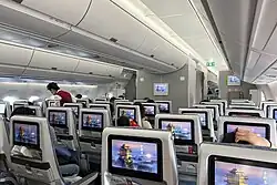 Economy class cabin on an Airbus A350-900.