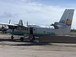 Air Kiribati has received its first new Dash 8 100 series aircraft, which touched down at Bonriki International Airport from Canada on 31 October 2017.[24]