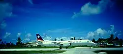 Historically, according to the Official Airline Guide (OAG), Air Marshall Islands was operating a Douglas DC-8-62CF "Combi" jetliner as well as a Hawker Siddeley HS 748 turboprop aircraft supplied in 1982.[10] The DC-8 Combi was operated in a mixed passenger/freight configuration and provided service linking Honolulu (HNL) with Kwajalein (KWA) and Majuro (MAJ) in competition with Continental Micronesia which was operating flights on the same routes with Boeing 727-200 aircraft at the time. Air Marshall Islands also operated a Saab 2000 high speed turboprop during the 1990s.[11] In addition, GAF Nomad STOL capable turboprop aircraft were previously operated as well.[12]