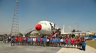 Aircraft Museum Kathmandu is an aviation museum located in Sinamangal, Kathmandu, Nepal.[1] The museum is inside an Airbus A330-300 of Turkish Airlines that only flew for about eight months before suffering a runway excursion at Tribhuvan International Airport in Kathmandu in March 2015.[2] It was established under a joint initiative by the Civil Aviation Authority of Nepal[3] and pilot Bed Upreti and his trust. This museum was officially opened to public on 28 November, 2017.[4] The museum's exhibits include the aircraft's original cockpit setting, model and miniature aircraft and items documenting the history of Nepalese aviation.[5] The museum is the second of its kind in Nepal, after Bed Upreti had already set up a similar, yet smaller aviation museum, the Aircraft Museum Dhangadhi in Dhangadhi in Western Nepal. The museum cost around NPRs 70 million.[6]