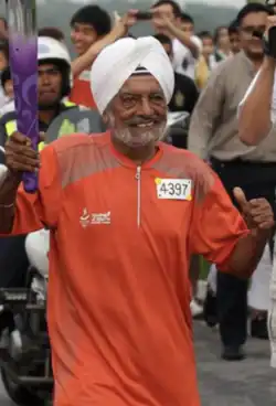 ![]() Ajit holding the torch during the 2010 Summer Youth Olympics | |